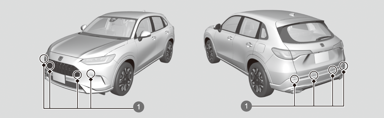 以下のときはソナーセンサーが正常に作動しなくなる場合があるため、Honda販売店で点検を受けてください。