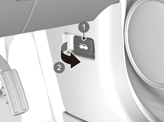 - 運転席足元にある、ボンネット解除ノブを引く。