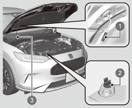 - ボンネット中央のレバーを右に押してロック機構を解除し、ボンネットを開ける。