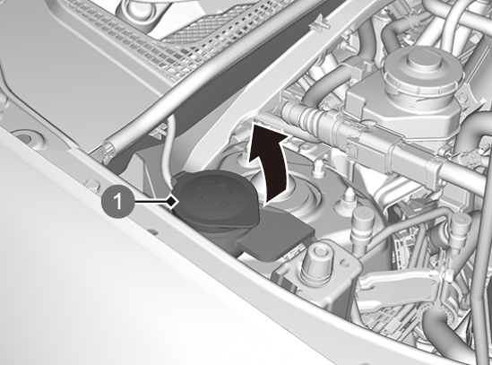 - 減っていた場合は、ウォッシャー液キャップを外し、ウォッシャータンクに補給します。