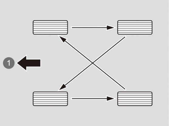 タイヤ回転方向が指定されているタイヤには、タイヤ回転指示マークがあります。図のように回転指示マークが前へ向くように取り付けてください。