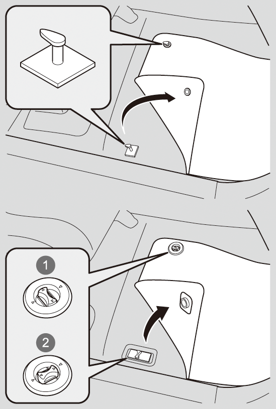 他のフロアマットをご使用の際は、フロアアンカーでしっかりと固定できるものをご使用ください。後席のフロアマットを使用する際は、正しく取り付けてください。