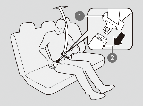 シートベルトを分離・収納するときは、タングプレートを▲マークがついているバックルの溝に差し込み、ラッチプレートを外してください。