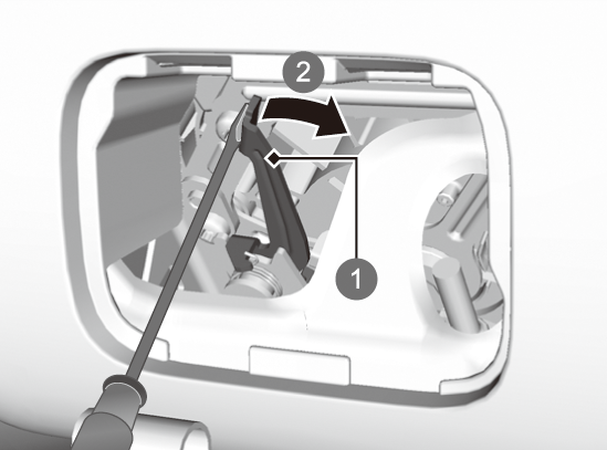 - テールゲートのリッドに、マイナスドライバーの先端を差し込み、押し開ける。