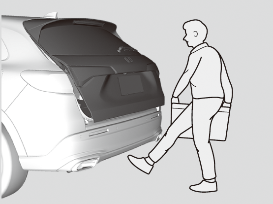 - Hondaスマートキーを携帯し、片足のつま先をリヤバンパー中央の下へ入れて引くような動作を行うとテールゲートを自動で開閉することができます。