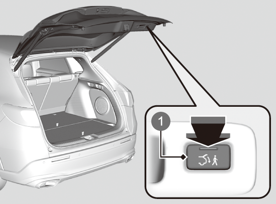 - パワーテールゲートを開閉するために、パワーテールゲートボタンを長押しします。