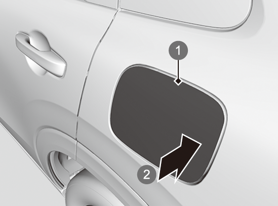 - フューエルリッドの右端を「カチッ」と音がするまで押し、手を離す。