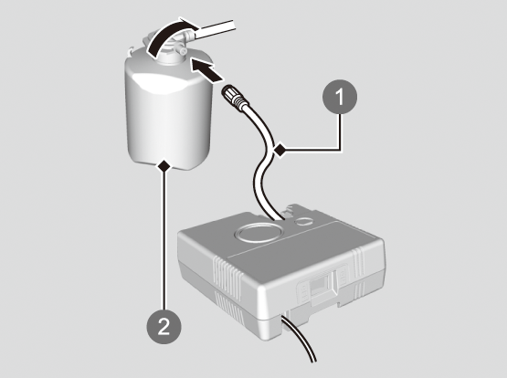 - ボトルホースを外すときは応急修理剤のふきこぼれに注意してください。ふきこぼれた修理剤は、布などで拭き取ってください。