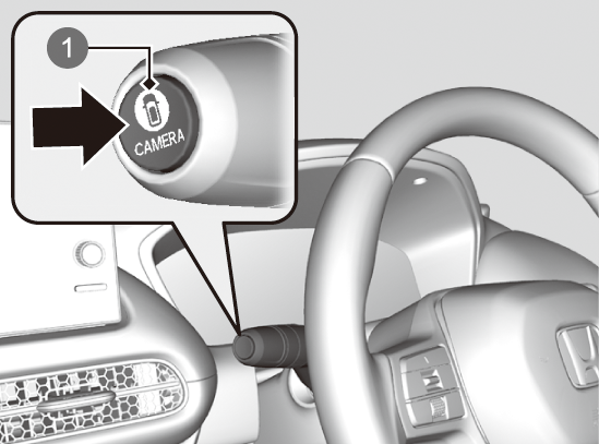 スイッチを押すと前方画面表示が表示できます。シフトポジションがR以外のときに