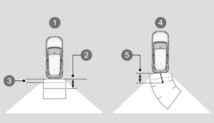 目安ガイド線:車両からの距離を表示することができます。この距離は、実際の距離とは異なる場合があります。
