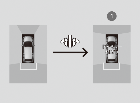 サイドビューは、ドアミラーを格納しているときは表示されません。