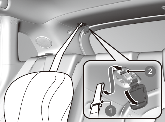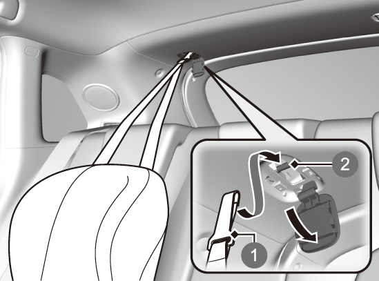- チャイルドシートがヘッドレストに干渉して安定して取り付けられない場合は、ヘッドレストを最も高い位置に上げてください。