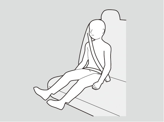 やむをえず、助手席にお子さまを乗せる場合は、できるだけシートを後方に下げ、必要ならばジュニアシートを使用し、適切にシートベルトを着用してすわらせてください。