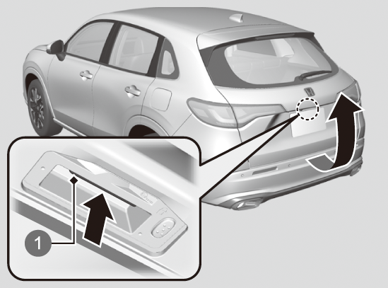 - 施錠されているときにHondaスマートキーを携帯してテールゲートハンドルを約1秒以上押すと、解錠されますのでそのまま引き上げることができます。