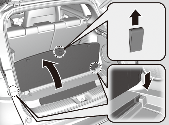 パーセルカバーの上に物を置かないでください。後方視界をさまたげるばかりでなく、急ブレーキなどのときにとび出すおそれがあります。