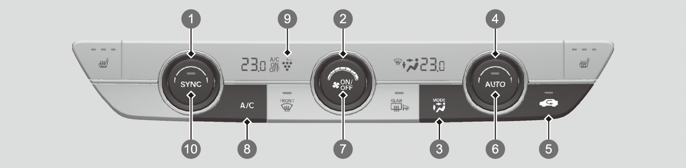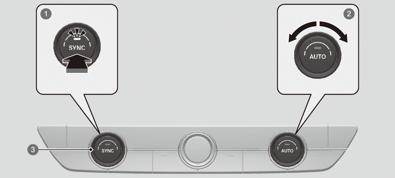 独立モードに戻すときは、SYNCを押すか、助手席側の温度調節ダイヤルを操作します。