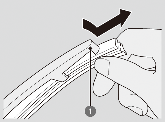- ラバーの先端部をブレードのストッパーから外れるまで引き、そのままラバーをブレードから引き抜く。