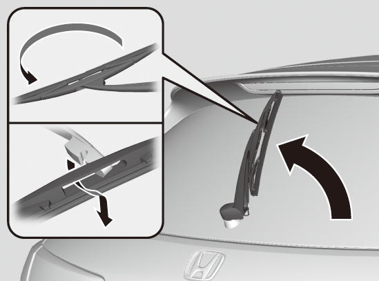 ブレードを外した状態でワイパーアームが倒れると、ガラスが損傷するおそれがあります。