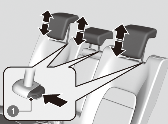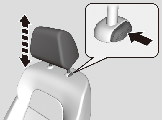 高くするとき:ヘッドレストを引き上げます。低くするとき:ノブを押しながら下げます。 -
