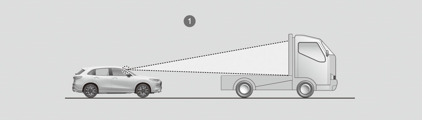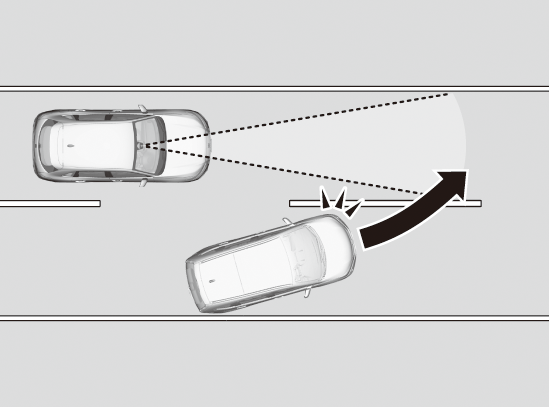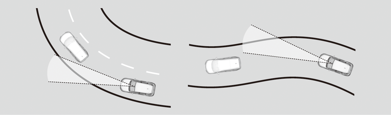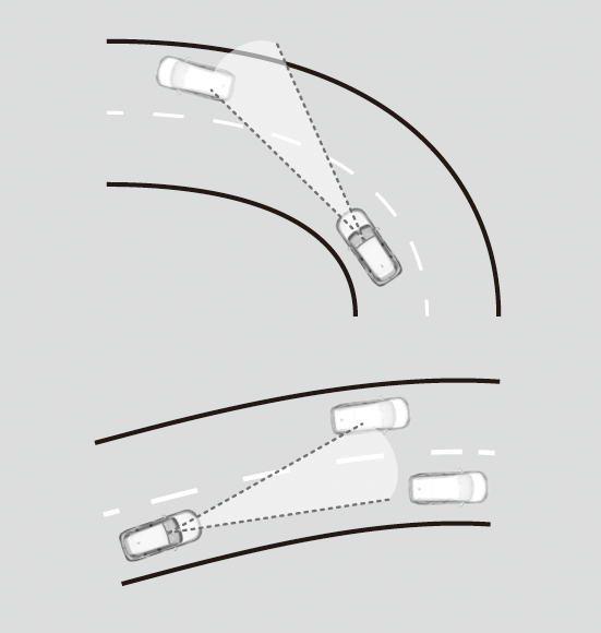 - 道路状況(カーブなど)や自車の状況(ハンドル操作や車線内の位置)によっては、一時的にとなりの車線の車や周囲の物に対して車間距離制御を行う場合があります。