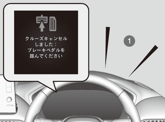 停車中の解除:渋滞追従機能付ACCによって自車が自動的に停車しているときに渋滞追従機能付ACCが解除された場合に、警告音が鳴りマルチインフォメーションディスプレイに警告が表示されることがあります。