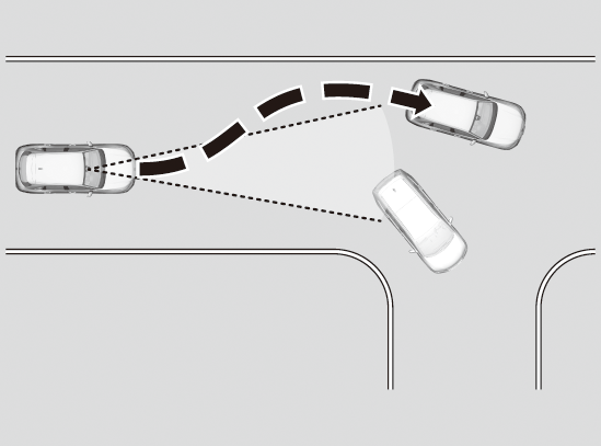 ※:右折時に対向車両に対して正面で衝突のおそれがあるときにCMBSが作動しますが、急なハンドル操作などによっては作動できない場合があります。
