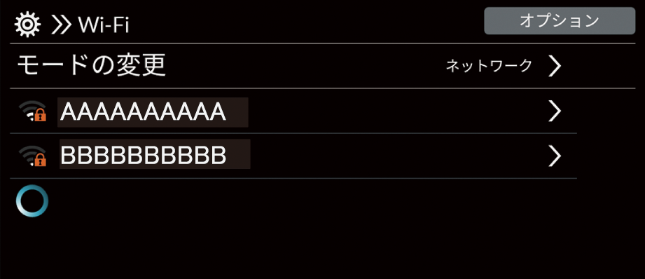 - 自動で検出されないWi-Fiスポットに接続する場合はオプション→他のネットワークを選択するの順に選択してください。