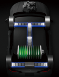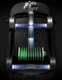 パワーフローは状態により動力伝達を青、充電を緑で表示します。
