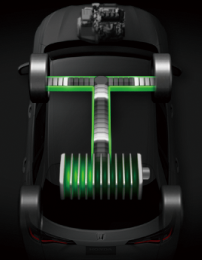 エンジンが直接的に車輪を駆動する際には、パワーフロー表示の画面内に