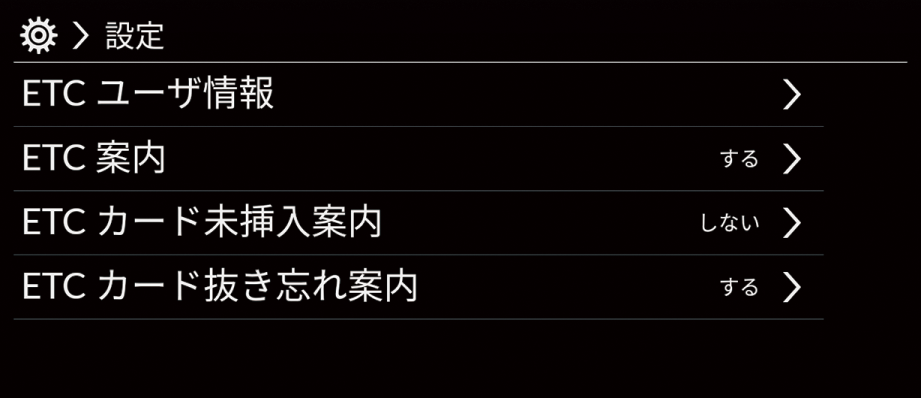 ETCカード未挿入案内:ETCカード未挿入案内通知を設定します。(初期値:しない)