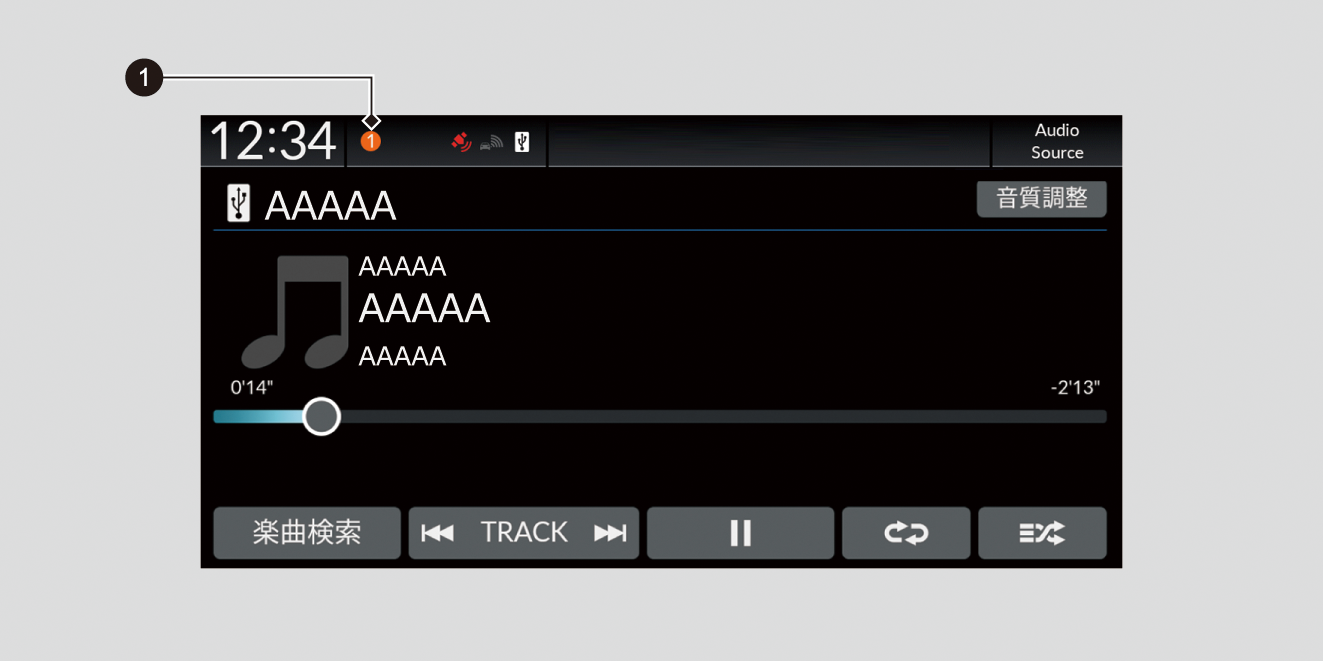 車両の情報や接続済みの携帯電話に関する情報などをお知らせアイコンで表示します。表示されたお知らせアイコンを選択すると、詳細が確認できます。