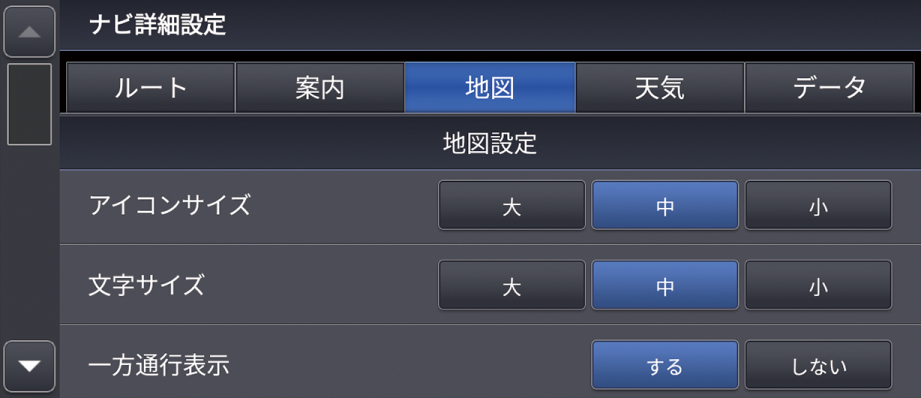 - アイコンサイズ:地図上に表示する施設マークなどのアイコンサイズを大、中、小から選択します。(初期値:中)