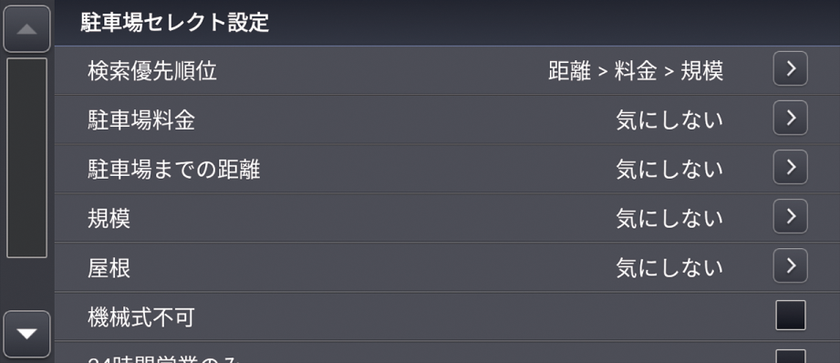 設定値で気にしないを選択した項目は、駐車場検索時に条件として考慮されません。