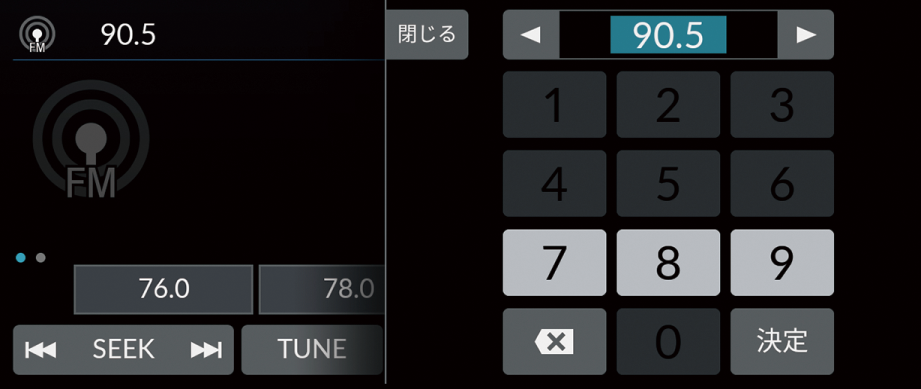 - 画面に表示されるキーボードを使って、設定したいラジオ周波数を入力する。