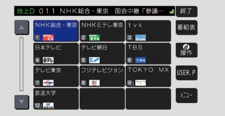 - 自動切替:地上D放送で受信状態が悪い場合に、ワンセグ放送へ自動で切り替わります。受信状態が良くなると、地上D放送に戻ります。