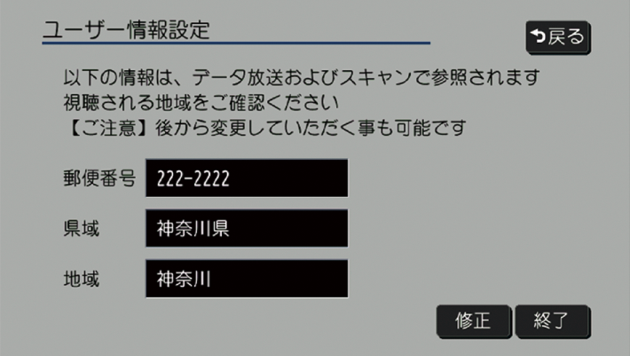 郵便番号:データ放送の地域の郵便番号を修正します。