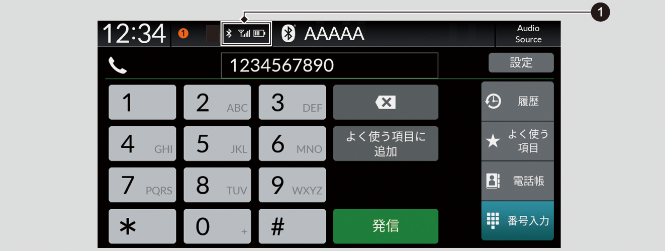 Bluetooth®接続が完了すると、画面の右上に携帯電話の状態を表す以下のアイコンが表示されます。