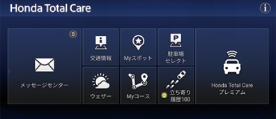 - 既読メッセージの確認方法は、HOMEボタンを押し、Honda Total Care→メッセージセンターの順に選択します。