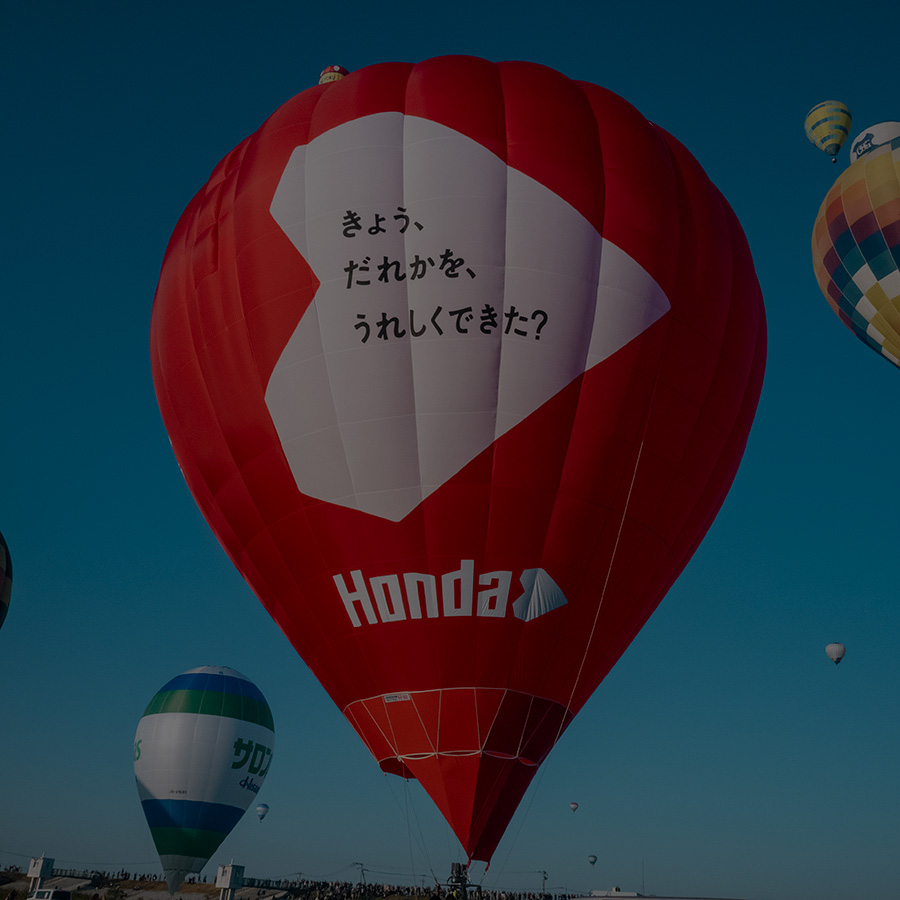 佐賀県の佐賀平野を南北に流れる一級河川、嘉瀬川の河川敷の空を、年に一度100機以上の熱気球が舞うイベント、熱気球ホンダグランプリ佐賀インターナショナルバルーンフェスタ。1980年に初めて開催されたこのイベントにHondaパワープロダクツは欠かせない存在なのです。