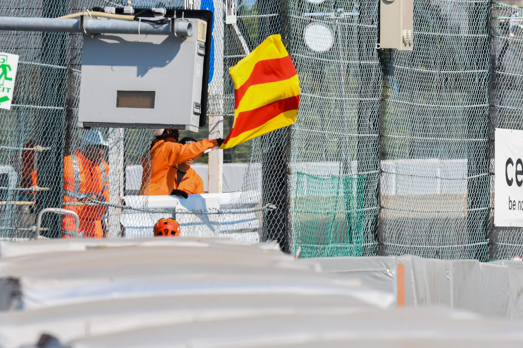 コースオフィシャルは、危険防止のために難燃性生地の上下つなぎに身を包み、ヘルメットを着用することが義務付けられているため、立っているだけでも汗が吹き出します。