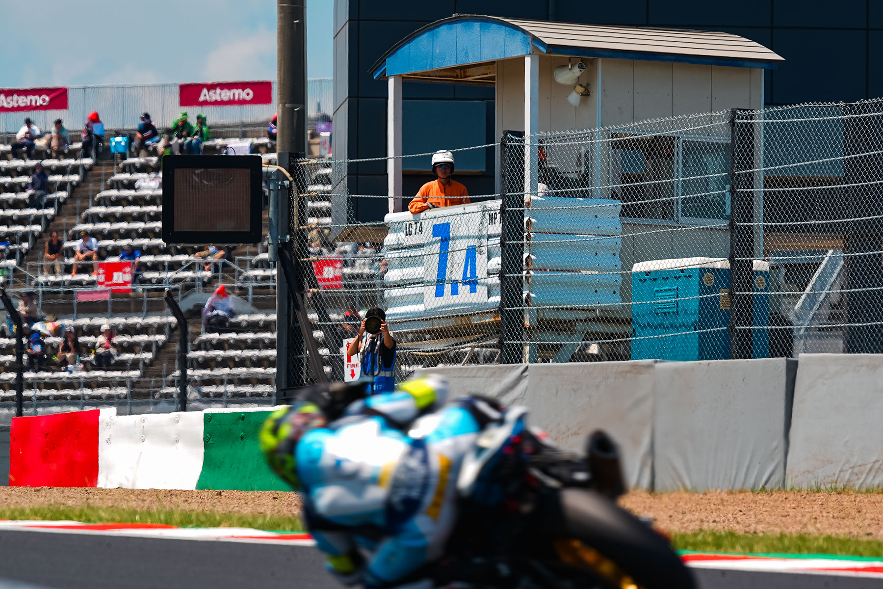 そしてスタッフの中でも最も過酷な現場を担当するのがコースオフィシャルのみなさん。彼らはコースサイドで待機し、オートバイの走行中には、走行するオートバイの挙動を常に監視。コース上で転倒やトラブルが発生すると、フラッグを掲示しながら後続の選手に危険を知らせ、転倒やトラブルが発生した場合は、ライダーやマシンを安全な場所へ移動させ、コース上に落ちた破片などを撤去します。