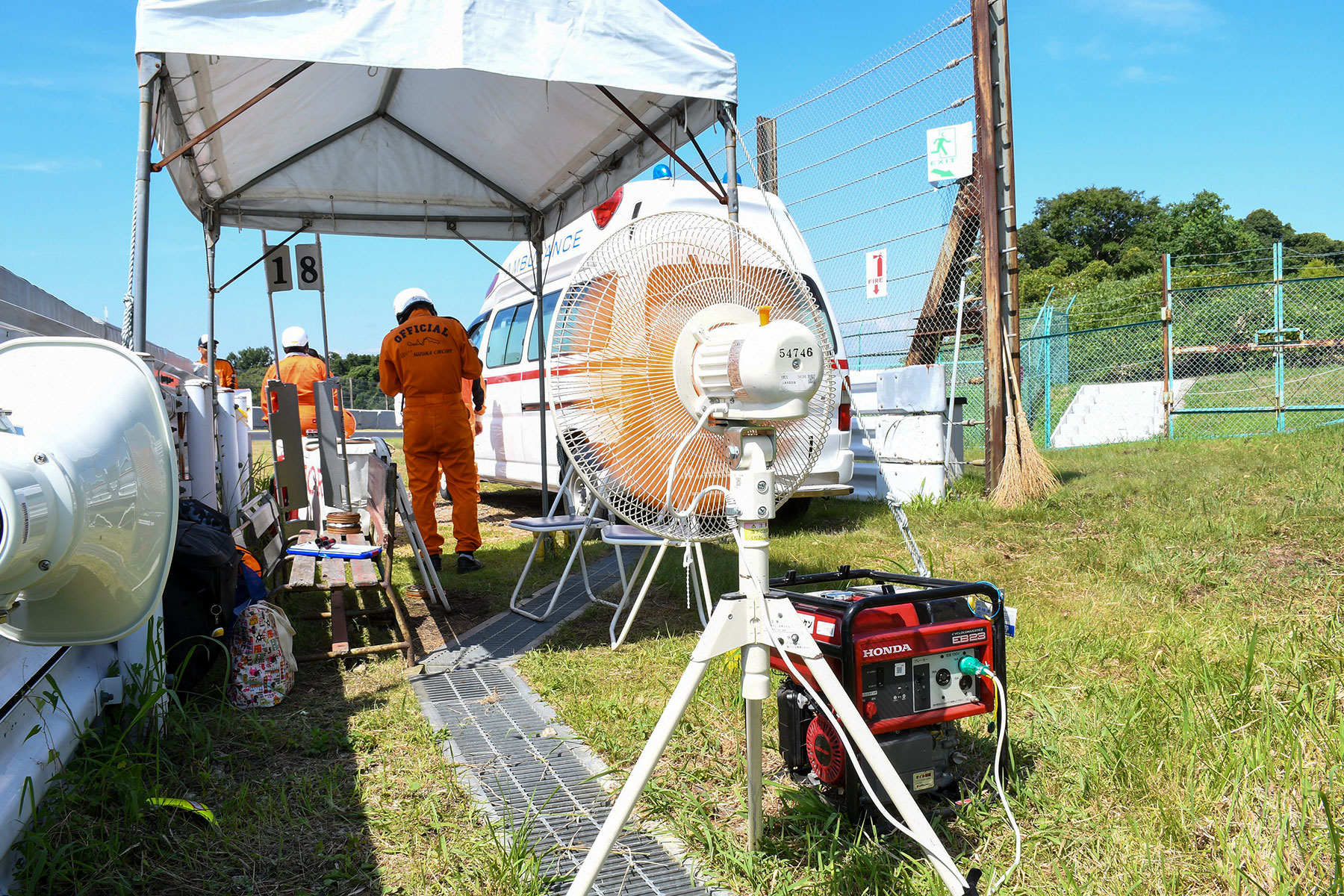 このように、鈴鹿8耐はコースオフィシャルが万全の体制で安全を確保しているからこそ成立しています。コースオフィシャルにとって扇風機やスポットクーラーは必要不可欠な装備となっているのです。その扇風機やスポットクーラーに電源を供給しているのがHondaの発電機であり、Hondaはオートバイだけでなく、パワープロダクツでも鈴鹿8耐を支えているのです。