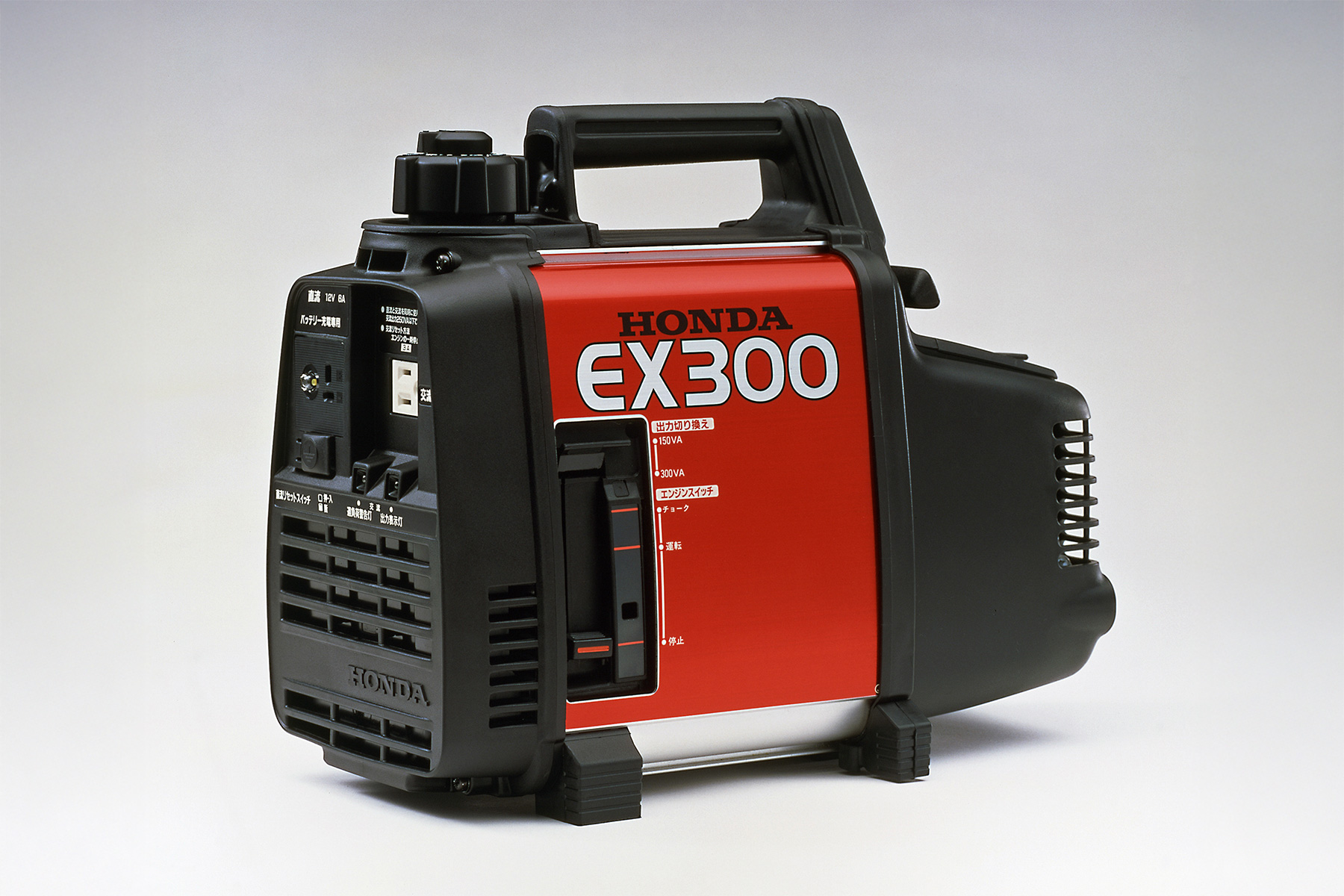 また、1987年には『小型軽量』を更に追及し、幅広い人が手軽に持ち運べる「ポシェットジェネレーター」をコンセプトとするEX300を発売。当時の同出力クラスの小型携帯発電機の多くが20kg前後の重量だったのに対し、EX300は8.5kgと、大幅に軽量化することに成功しました。