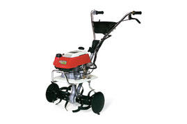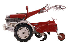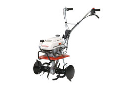 扱い易い小柄なボディに最大出力4.5馬力の新開発エンジンを搭載し、露地野菜・ハウス栽培・果樹栽培などの管理作業から、力のいる深い溝掘り・畦盛りや同時マルチ、耕起作業等まで幅広い用途に適応するティラーF42を発売。