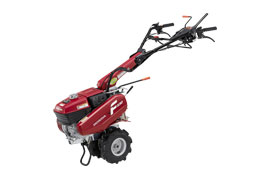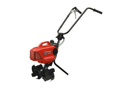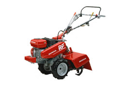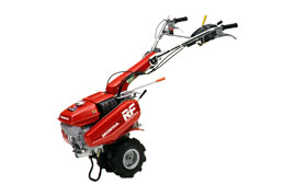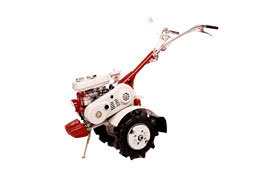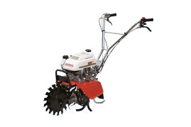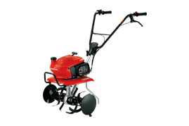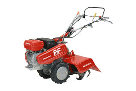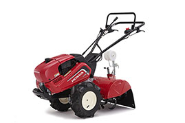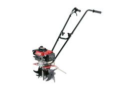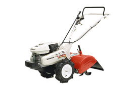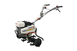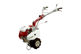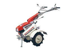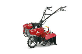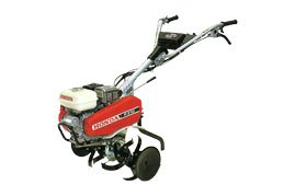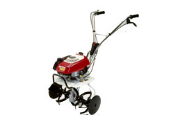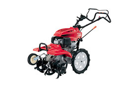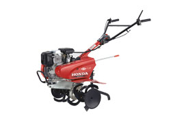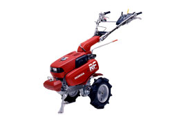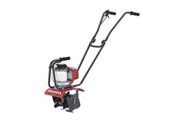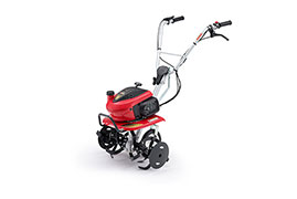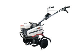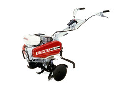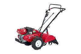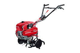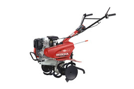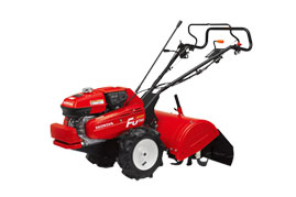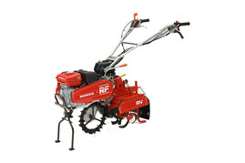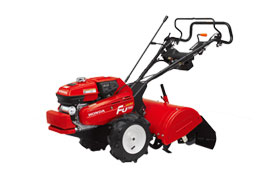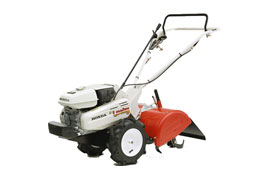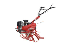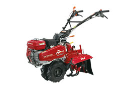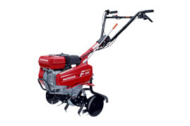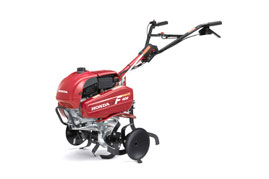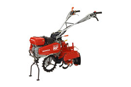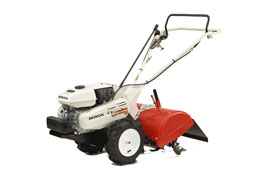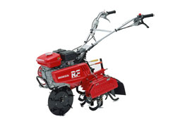 家庭菜園などで女性でも簡単に操作できる超ミニサイズのティラーホンダ「こまめ」(F200)と、小回り作業がらくに出来るサイドクラッチ機構付き小型ティラー「ホンダF400L」。