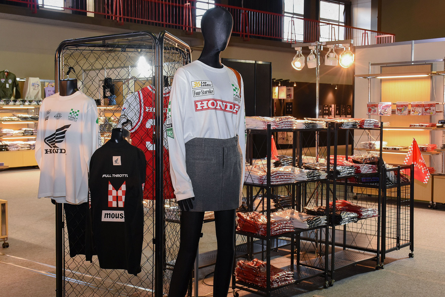 アリーナ内には販売コーナーも用意し、「みろくの里」の限定オリジナルコラボレーション商品や、Honda×Kuromi商品、そしてHondaとファッションブランド「MOUSSY」のコラボレーション車両の展示やオリジナル商品も販売しています。