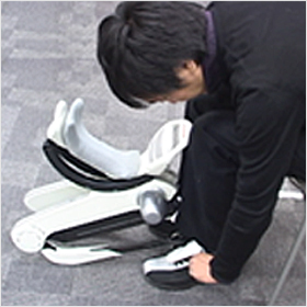 • 機器につながった靴を履き、シートを持ち上げるだけで、アシストを開始できる。