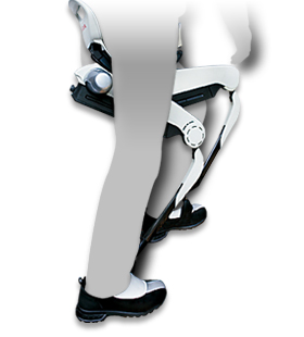• モーターの力により、靴とシートとの間にあるフレームをひざのように曲げ・伸ばしすることで、シートを押上げて体重の一部を支え、脚の筋肉と、関節(股関節、ひざ関節、足首関節)の負担を軽減する。