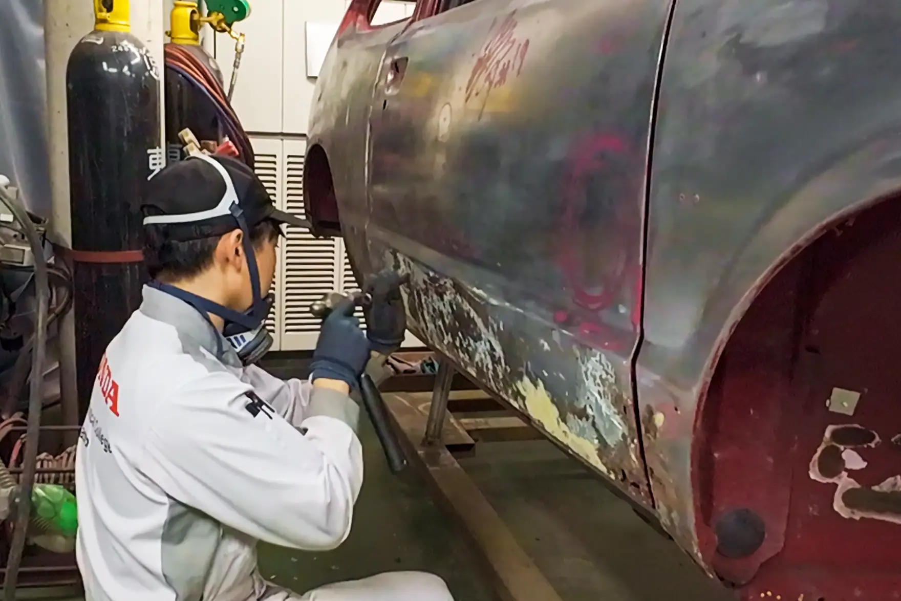 錆びて穴の空いたボディーの修復から始まったレストア