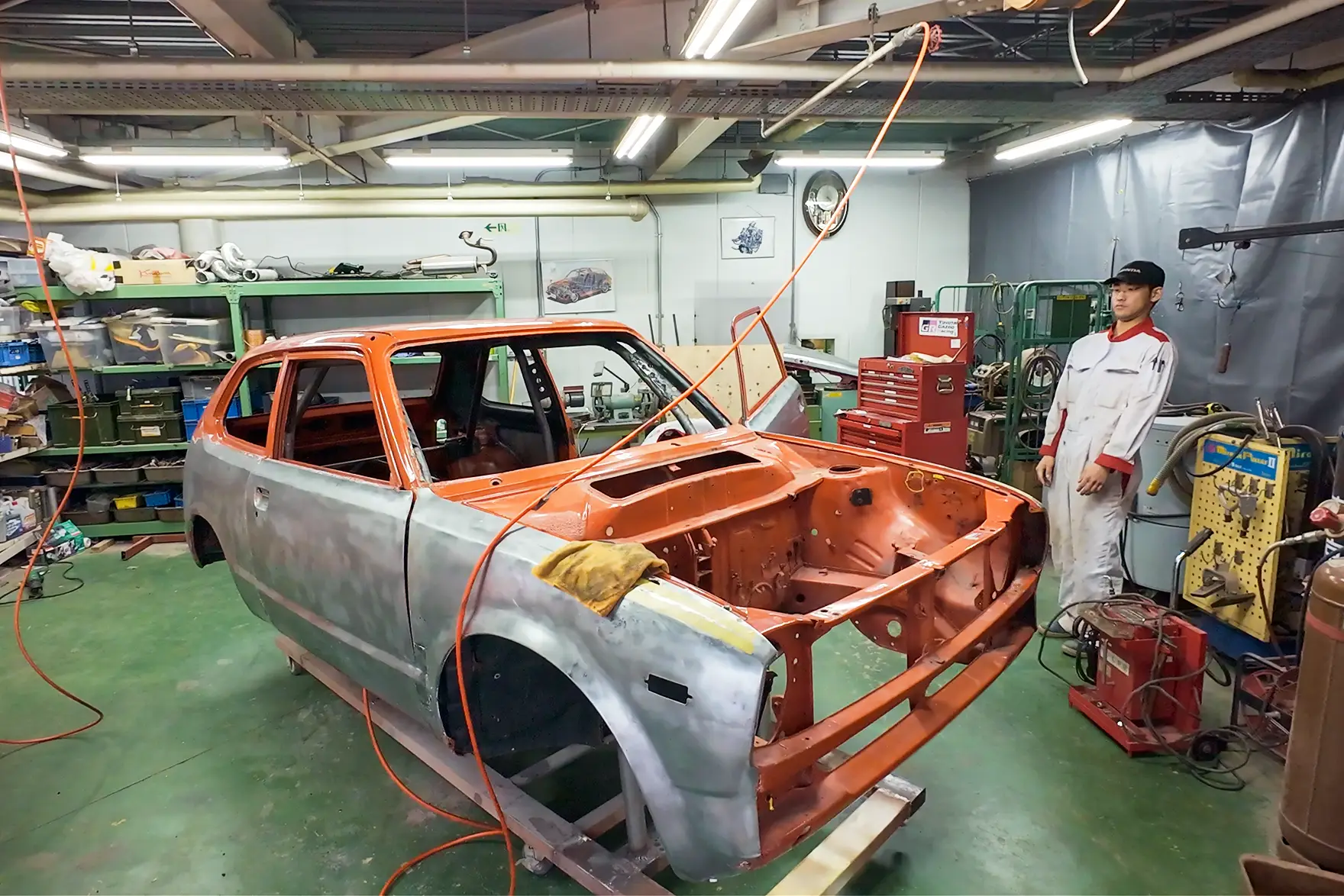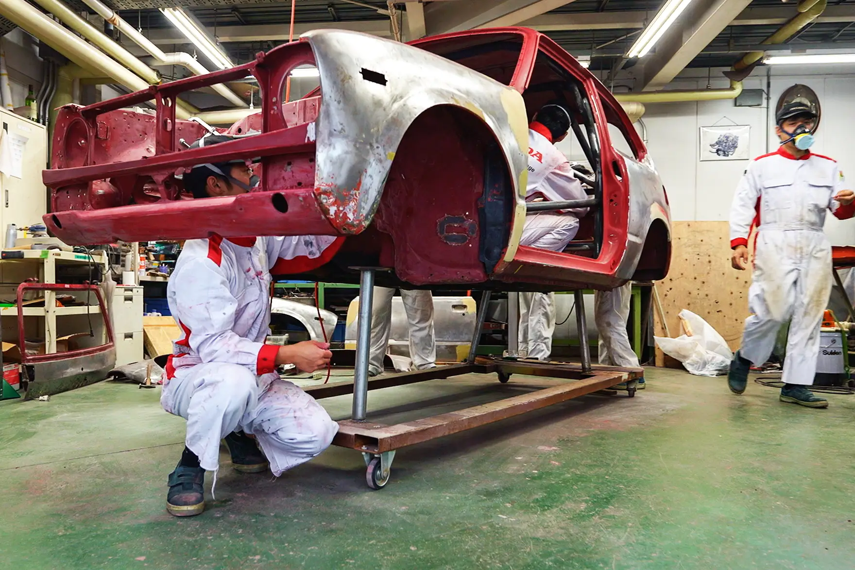 サンセット号は、もともと東京大学とホンダ学園のコラボレーションプロジェクトで2018年にモンテカルロに挑んだ車両。マドリード号は、ホンダ学園の企画で2017年にニュージーランドのタルガ・ロトルア・ラリーに出場した車両。出場から年月を経て、ボディーはあちこち錆びており、錆を落とすと穴が空いてしまうような状態でした。